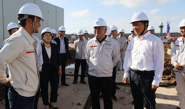 10月16日,集團(tuán)黨委書(shū)記、董事長(zhǎng)董毅與中國(guó)能建江蘇院黨委副書(shū)記、總經(jīng)理查申森一行前往興悅420MW項(xiàng)目現(xiàn)場(chǎng)開(kāi)展聯(lián)合安全檢查,并就推進(jìn)項(xiàng)目建設(shè)事宜座談交流。
